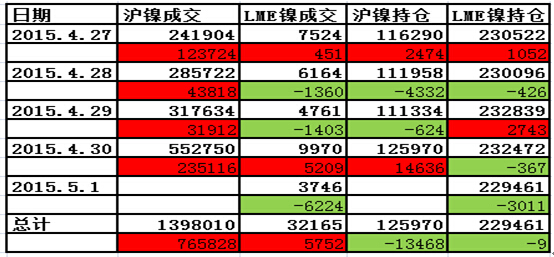 滬鎳與LME鎳電子盤成交狀況: