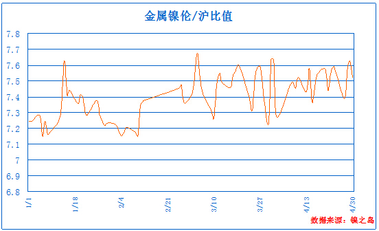 LME鎳與滬鎳比價: