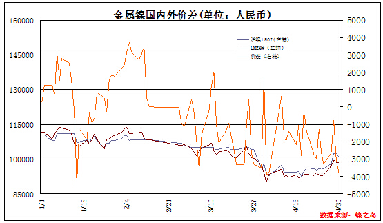 上周滬倫兩地的鎳期貨價格紛紛走高,出現(xiàn)了較大幅度的反彈,受此影響下,上周金川公司出廠價穩(wěn)定在10萬以上,周內(nèi)累計上調(diào)1300元/噸。近期市場最為關(guān)注的便是俄鎳在上海期貨交易所能否成為交割品牌的問題,由于目前國內(nèi)市場流通的金川鎳板大多不具備交倉標(biāo)準(zhǔn),因此俄鎳能否交割以及是否設(shè)定貼水已經(jīng)成為了現(xiàn)貨商最為關(guān)注的問題。上周俄鎳現(xiàn)貨價格與金川貼水再次拉大,由于價格較低,市場成交也比較稀少,受交割標(biāo)準(zhǔn)的約束,期限套利的參與者也逐漸較少,因此,整個上周現(xiàn)貨成交情況并不理想,下游采購也有所減弱。目前,部分貿(mào)易商的囤貨意愿有所增強。