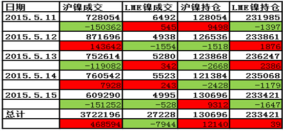 滬鎳與LME鎳電子盤成交狀況: