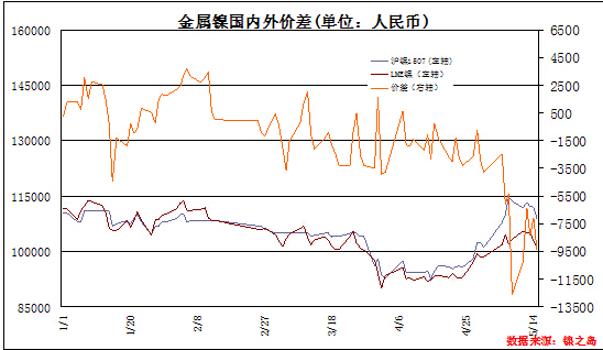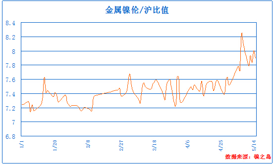 LME鎳與滬鎳比價(jià):