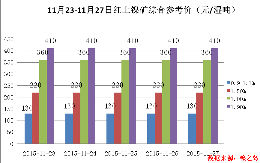 隨著期貨行情有所好轉(zhuǎn),鋼廠對于鎳鐵招標價有所上調(diào),江蘇某鋼廠以730/鎳招標,環(huán)比上調(diào)40元/鎳。據(jù)了解,工廠對于此價格供貨繆繆,普遍心理價位在780/鎳。步入年底,低迷的鎳價伴隨資金流緊張,鎳礦市場基本處于“休假”狀態(tài)。