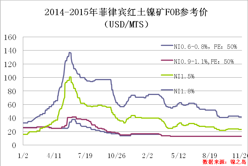 上周菲律賓期貨礦主流報價未做下調(diào)。雖鎳期貨市場上周跌宕起伏,但由于受菲主產(chǎn)區(qū)雨季影響,目前在裝船只有所減少。加之國內(nèi)鐵價的低迷導致工廠對于鎳礦期貨資源需求較為冷清,鎳礦市場供需表現(xiàn)較為冷清。