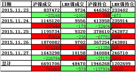 滬鎳主力與LME鎳電子盤成交狀況: